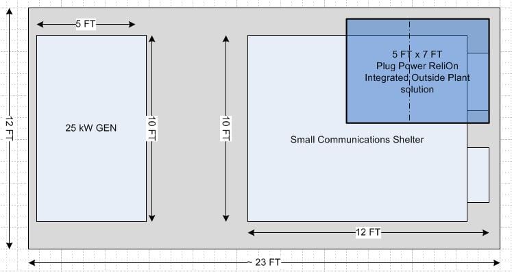 87% footprint savings using Plug Power’s ReliOn integrated OSP solution compared to a small communications shelter and combustion generator